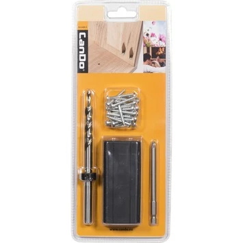 Zoek je een handig hulpmiddel om verbindingen voor panelen te maken? Kies dan voor de CanDo schroefverbinder boorhulp voor timmerpanelen. Met deze schroefverbinder zorg je ervoor dat je schroeven netjes onder een hoek boort, zodat je ze bijna niet meer ziet. Erg handig, want deze schroefverbinder is geschikt voor alle houtsoorten met een dikte vanaf 17 t/m 30mm. Deze startset bestaat uit een boormal, een boor, een bitje en 24 stuks 4x30mm schroeven. Kortom: een onmisbaar product bij het maken van onder andere jouw eigen meubels.