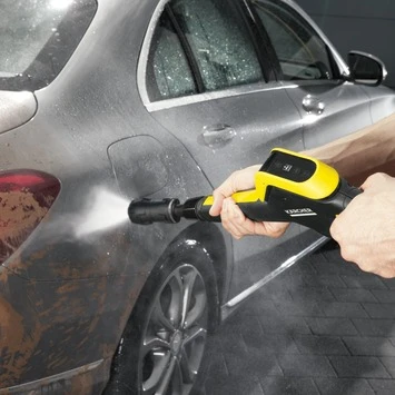 Hogedrukpistool met leddisplay voor weergave van drukniveau en reinigingsmiddelmodus. Met Quick Connect. Voor Kärcher hogedrukreinigers met drukregeling uit de K4-K5 klasse.