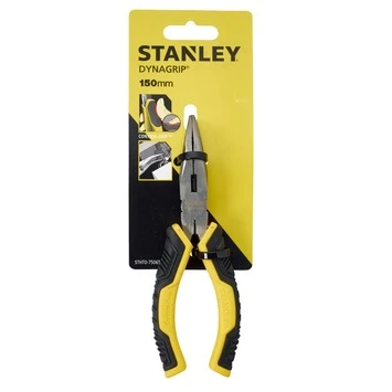 Stanley Dynagrip tangen hebben een lange levensduur door gesmede koolstofstalen bekken en handvatten en door de inductiegeharde en ontladen bekken. Alle uitwendige stalen delen zijn gepolijst en blank gelakt om ze tegen corrosie te beschermen. De nauwkeurig mechanisch bewerkte scharnier en bekken zorgen voor een soepele werking en een stevige greep. Handvatten bestaande uit 2 materialen zorgen voor een comfotabele grip. Lengte telefoontang bocht type STHT0-75065: 150mm